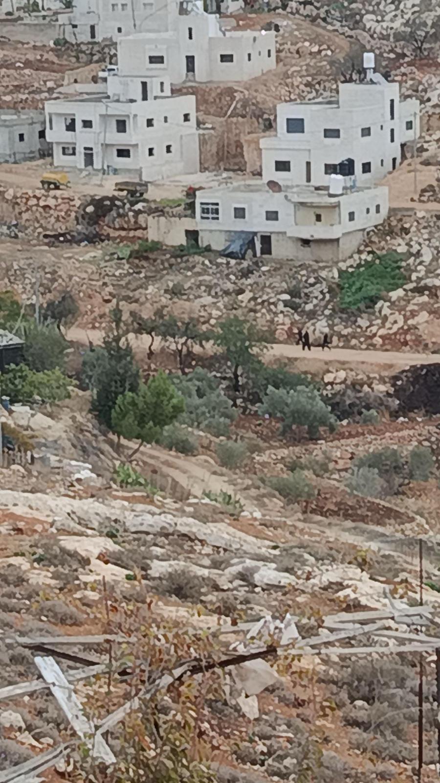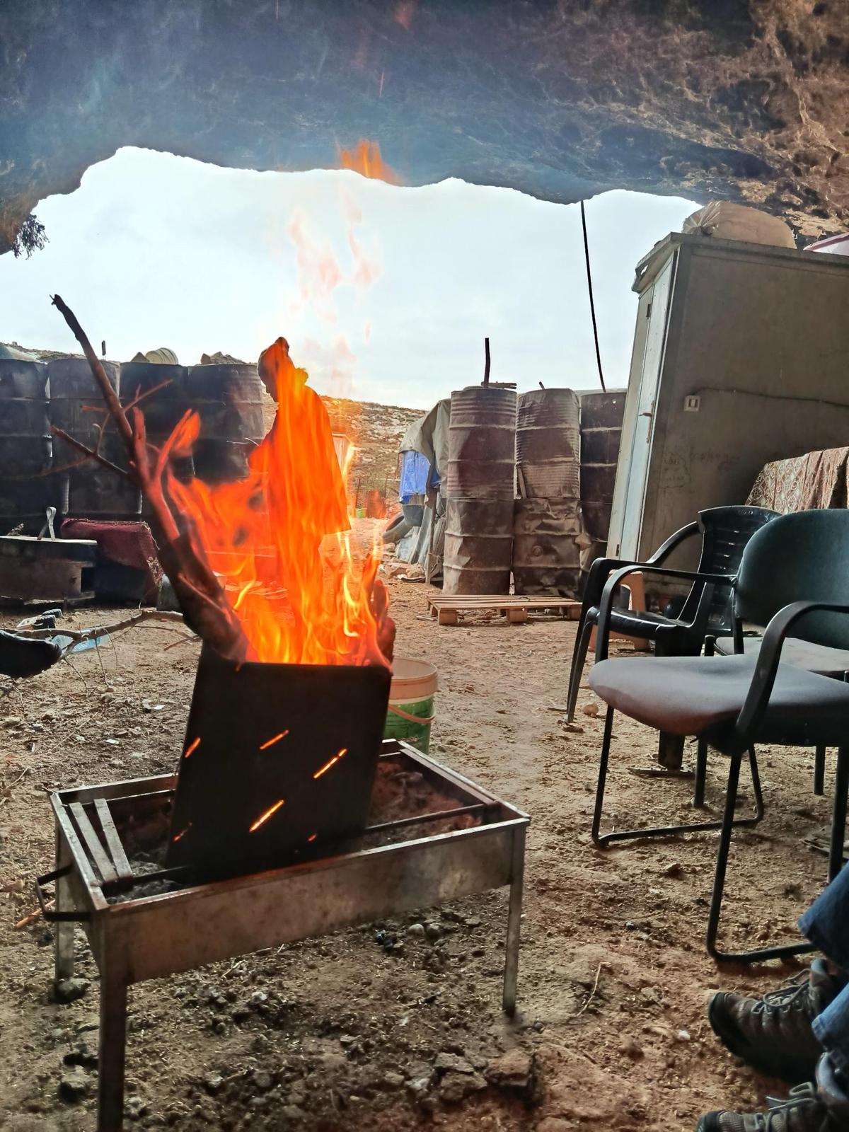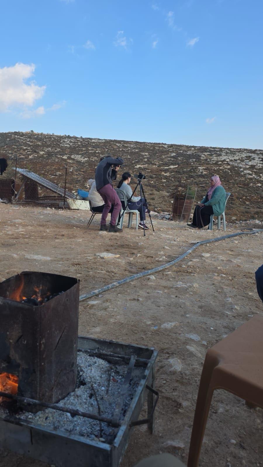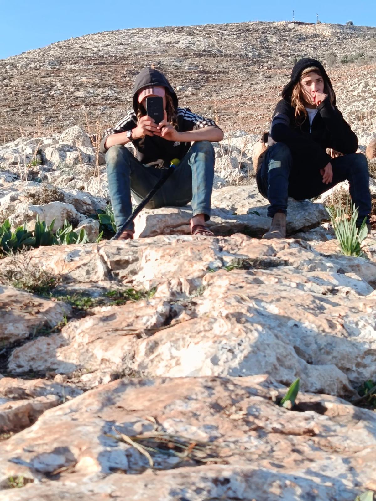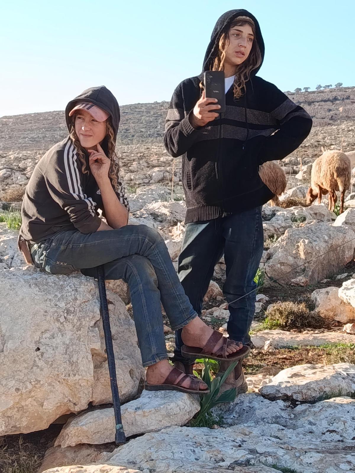 Still as the refuge, monitoring settlers who show up in the area surrounding the family's house. Two Israeli camarades are with the family.