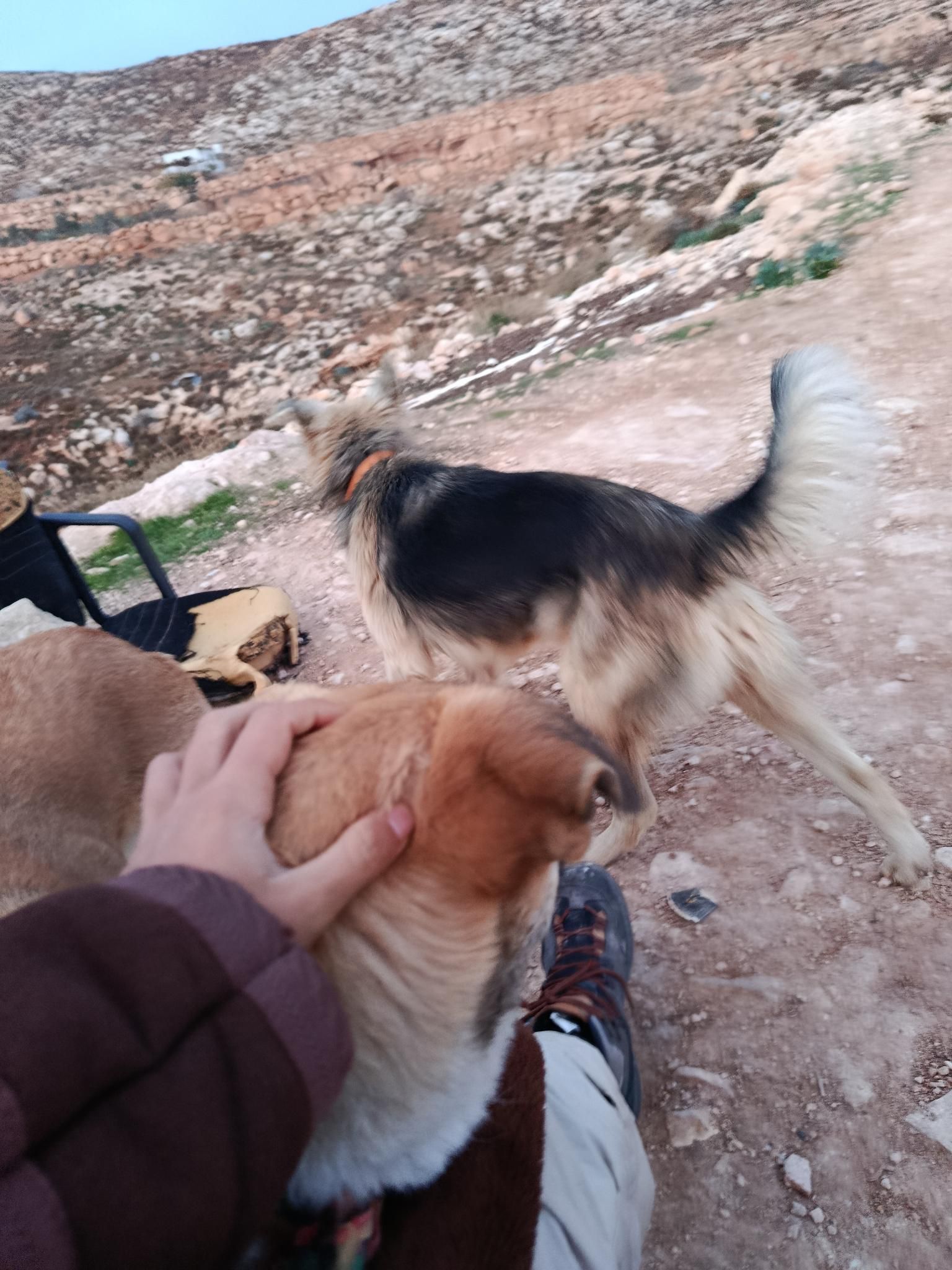 N. rushes in the refuge screaming "Musthtaltin!" (it means settlers). We all sleep with our shoes on since three weeks because we know that if we hear that word we must run as fast as possible down the ankle-killer valley, to reach the family as fast as possible