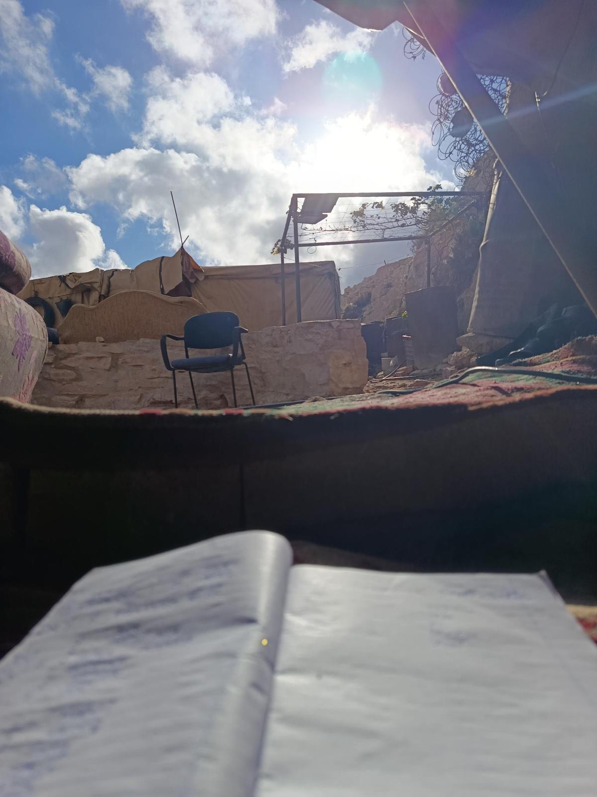 Mar7aba, silence and peace today apart from a couple of visits from a settler's drone saying things in Hebrew no one understood.