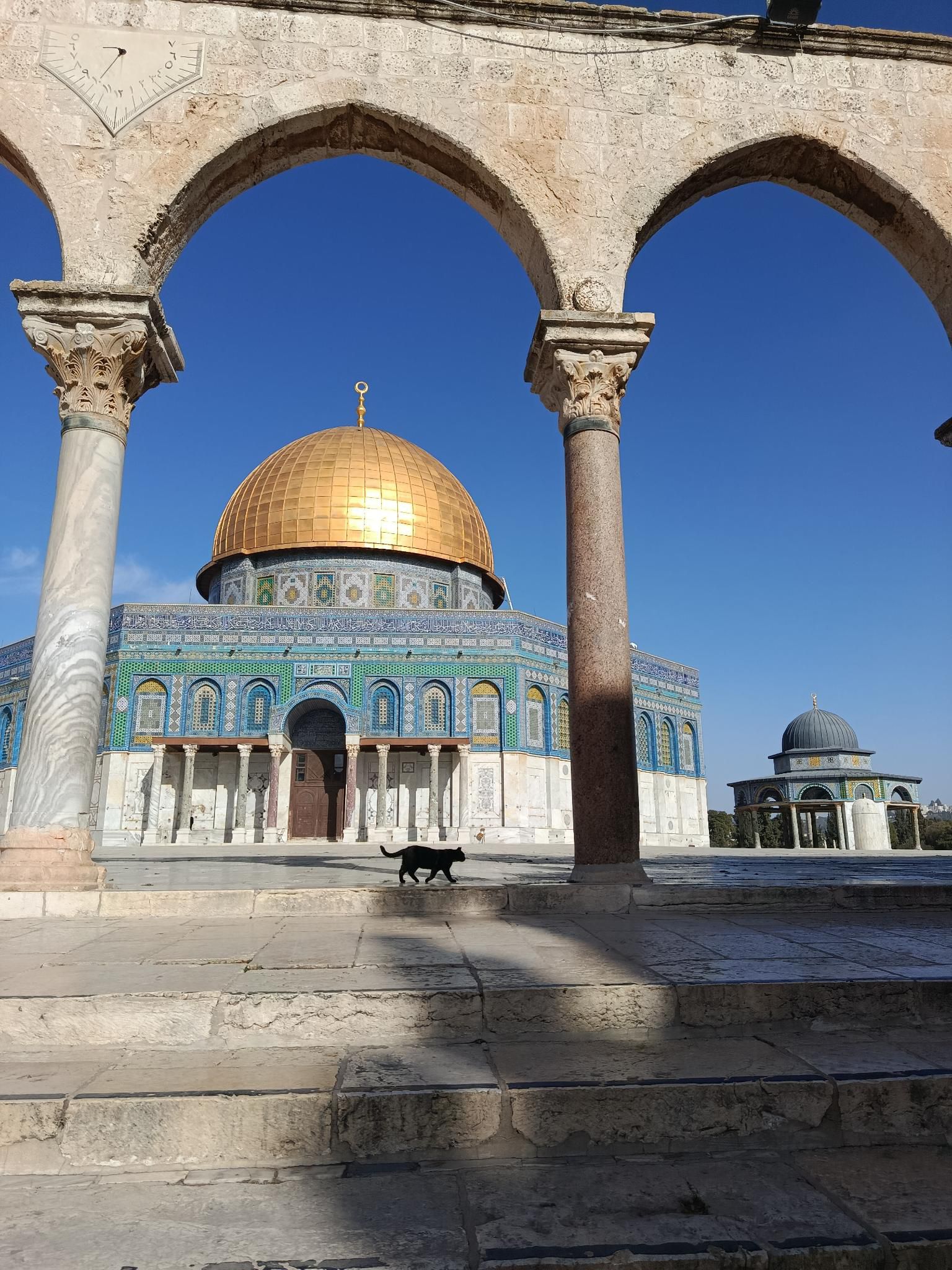 It is considered the third holiest place of Islam, as the place from which the prophet Mohammed ascended to heaven. It served as the first "qibla", the direction Muslims turn towards when praying. The Dome of the Rock, the blue Mosque in the pictures from this morning, was completed in 692 CE, making it one of the oldest existing Islamic structures in the world.