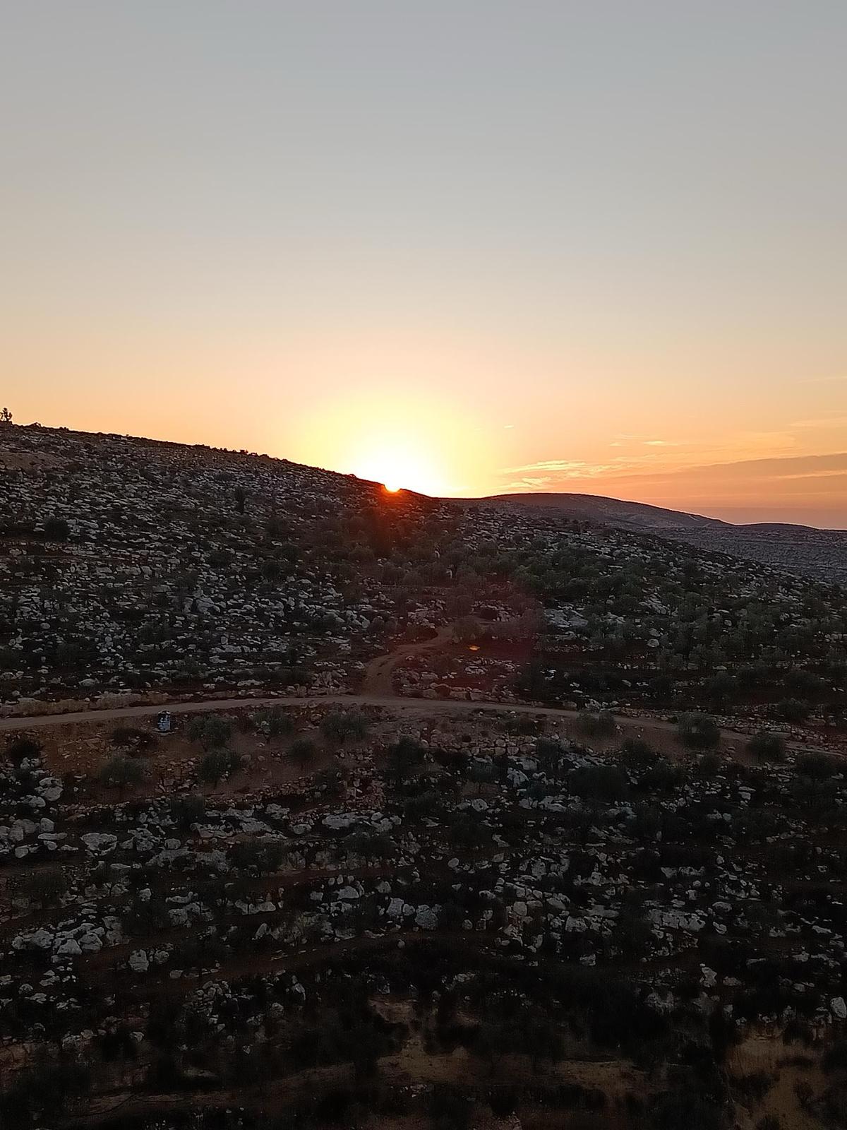 In the pictures: twilight over the valley, a flare launched by the army over the Al-Mughayyr village to intimidate the inhabitants, view of the village from where I am sleeping, the sounds of the night.
