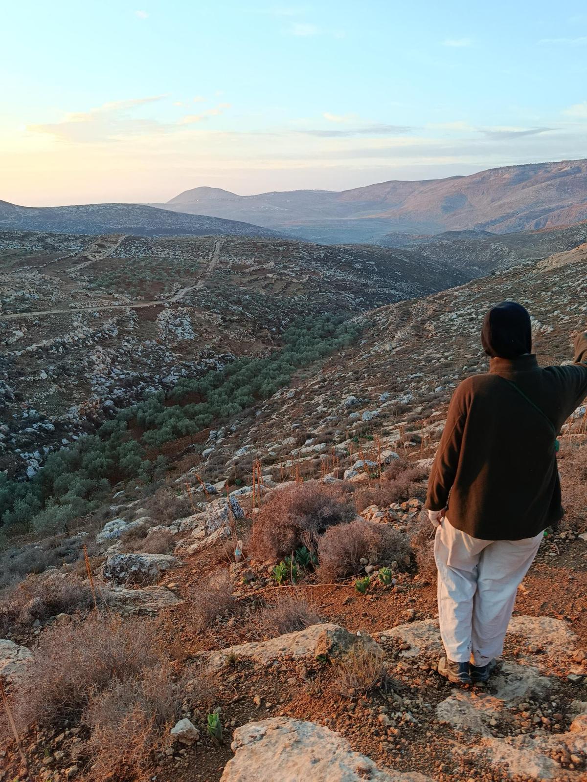 We keep climbing in the direction of the refuge. The sun is rising and it's a beautiful dawn. We can see the lights of Amman in the distance, and we all try to let this sight sink in as much as we can, convinced this will be our last time watching Palestine - surely the Zionists will deny our right of entering again.