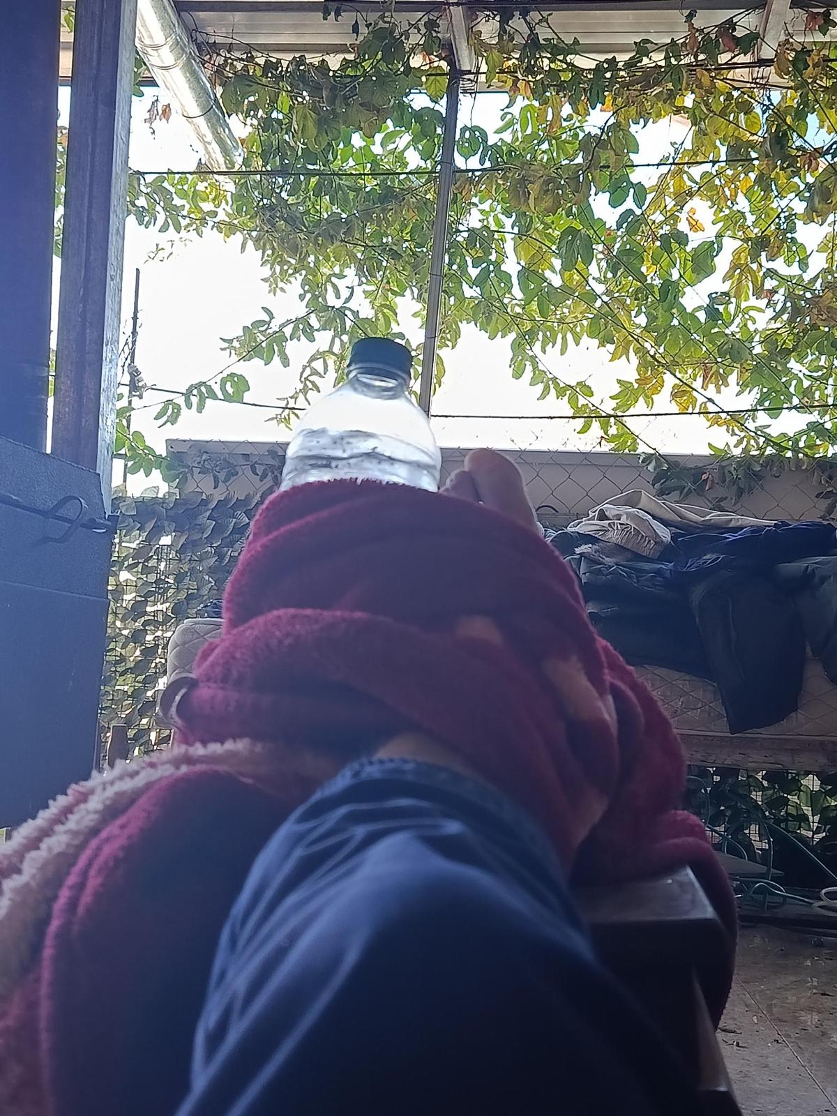 The first time we asked for drinking, a soldier poured the water in our mouths. The following times, E. was blindfoldedly pouring it for us, having her hands zip tied in front. This second way of drinking felt one milion times better, even if it got me a bit wet.